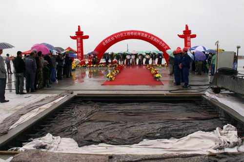 2010年8月20日上午10時,金昌機場飛行區(qū)停機坪混凝土道面工程順利封倉。甘肅省交通運輸廳、金昌市政府、甘肅機場建設(shè)投資管理公司、甘肅機場項目建設(shè)指揮部及施工單位等有關(guān)單位領(lǐng)導(dǎo)現(xiàn)場見證了道面工程順利封倉的時刻。