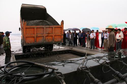 由公司承建的金昌機場停機坪工程按4C標(biāo)準(zhǔn)設(shè)計,站坪機位4個(2B2C),總面積2.65萬平方米,可供波音737和空客320等機型的起降。該項工程自2009年10月進場,公司金昌機場項目部全體人員在高溫酷暑、大風(fēng)揚沙等惡劣氣候條件下,克服種種困難,通過改進施工工藝、調(diào)整作業(yè)時間等措施,順利完成了基礎(chǔ)施工。項目部僅用了25個晝夜就完成停機坪2.65萬平方米混凝土道面工程施工。