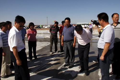 8月21日,由喬新山局長(zhǎng)率領(lǐng)的民航西北管理局工作檢查組一行蒞臨金昌機(jī)場(chǎng)飛行區(qū)施工現(xiàn)場(chǎng)檢查指導(dǎo)工作。在飛行區(qū)停機(jī)坪建設(shè)工地,在了解到公司金昌機(jī)場(chǎng)項(xiàng)目部?jī)H用了二十五個(gè)晝夜完成了總面積2.65萬平方米停機(jī)坪道面工程的情況后,對(duì)大家的辛勤勞動(dòng)給予了充分肯定,并鼓勵(lì)廣大建設(shè)者繼續(xù)鼓足干勁、克服困難,發(fā)揚(yáng)求真務(wù)實(shí)、艱苦奮斗的作風(fēng),確保工程按期完工。