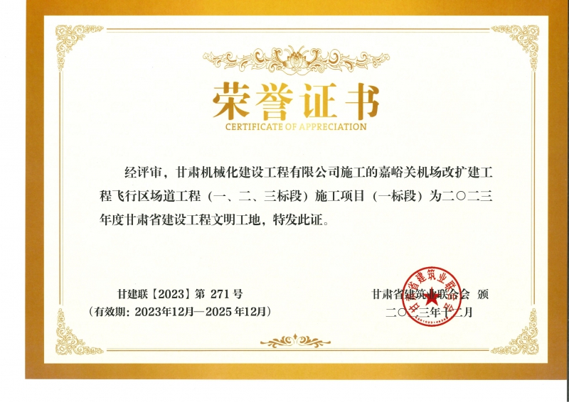 2023年度甘肅省建設(shè)工程文明工地 嘉峪關(guān)機場改擴建工飛行區(qū)場道(一、二、三標(biāo)段) 施工項目 (一標(biāo)段)